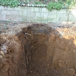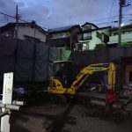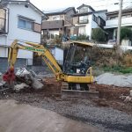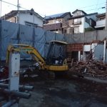解体工事を着工いたします。工事期間中は万全な安全対策はもちろんのこと、防音シートや水撒きなどで防音・振動・防塵対策をしっかりと行ない、近隣へ配慮した解体工事を行ないます。建物解体終了後、廃材が地中に残ったりしていないか、その下にコンクリートが入っていないか確認するため、弊社は地中確認を徹底し、転圧、整地工を行います。(地中埋設物が見つかり、工事スケジュールが変更になる場合は、事前にご連絡させて頂きます。)